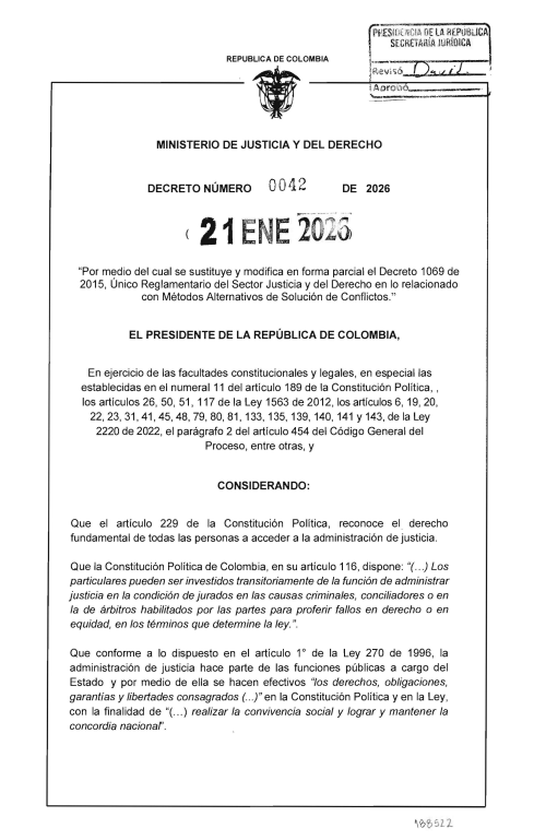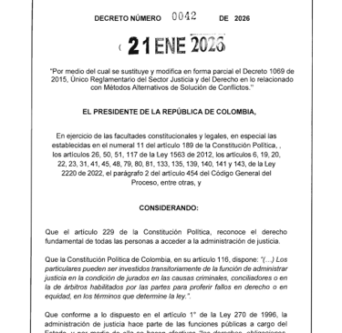 "Por medio del cual se sustituye y modifica en forma parcial el Decreto 1069 de 2015, Único Reglamentario del Sector Justicia y del Derecho en lo relacionado con Métodos Alternativos de Solución de Conflictos."